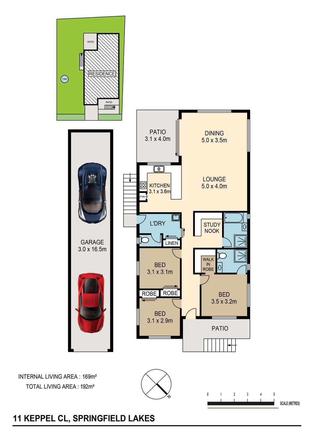 * 5000L water tank under the house with secure pump