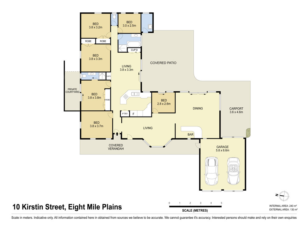 For rest and relaxation, the home provides five generous bedrooms all with built-in wardrobes. A parent's retreat, the master bedroom is well equipped with a modern ensuite while all other bedrooms are serviced by a central bathroom.